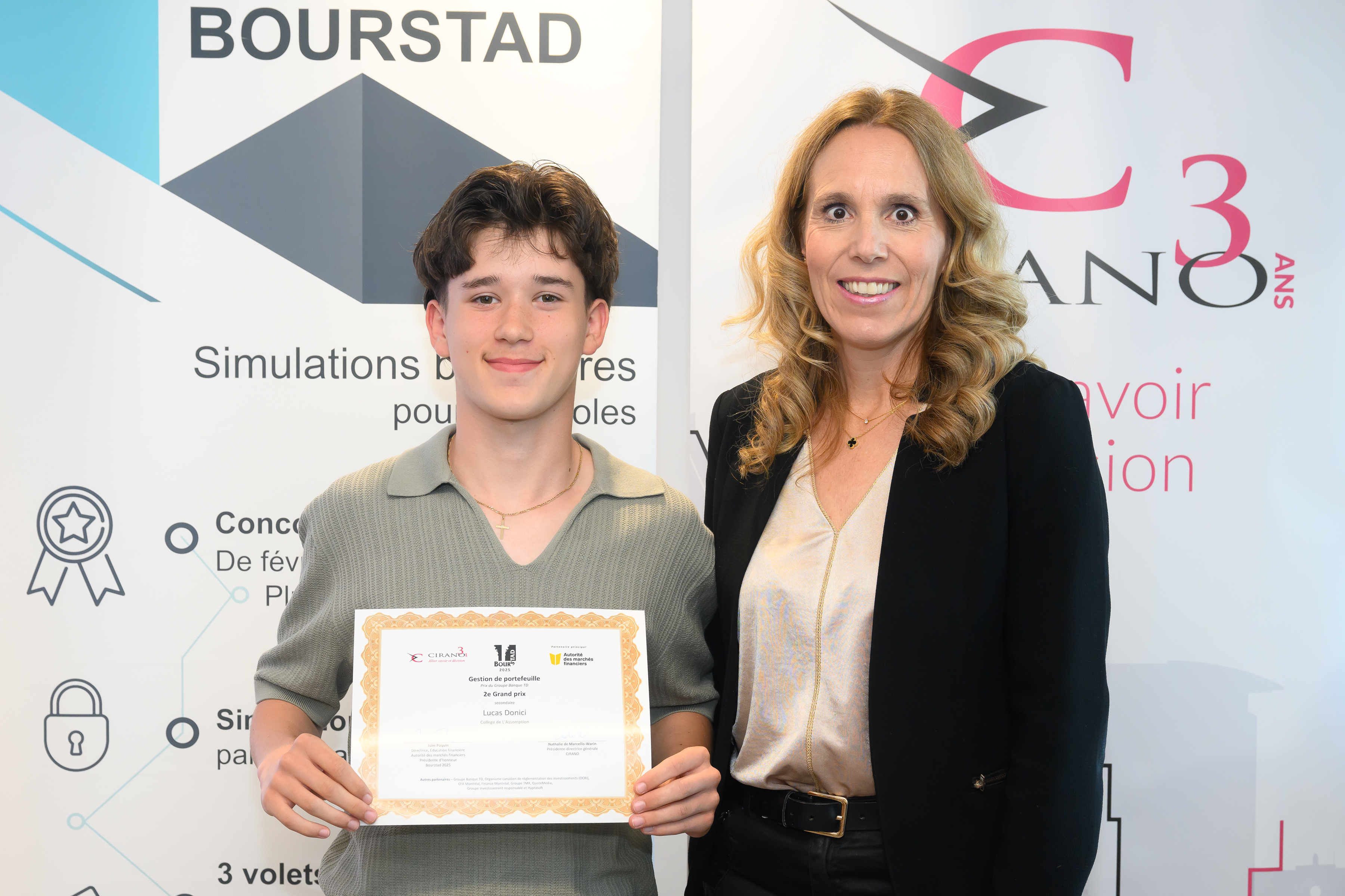 Under the honorary presidency of Ms. Julie Paquin, Director of Financial Education at Autorité des marchés financiers, beginners as well as more experienced investors had the opportunity to manage a virtual portfolio of $200,000 and invest this amount by choosing securities among a selection of real stocks listed on stock markets during the 2025 Bourstad stock market simulation held from February 10 to April 11, 2025.