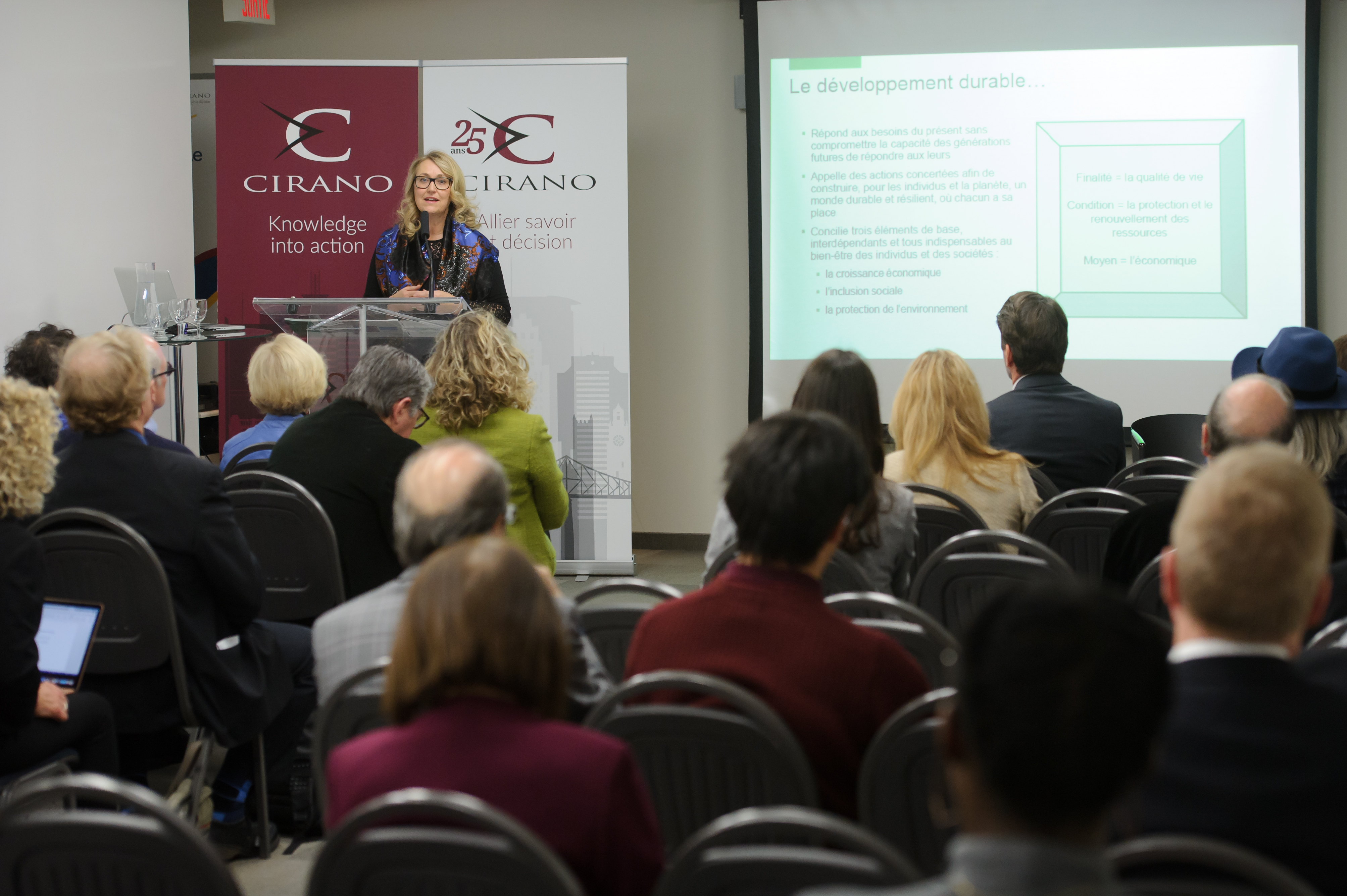 During this signature conference organized as part of CIRANO's 25th anniversary activities, Pauline D'Amboise, Secretary General and Vice President Governance and Sustainable Development at Desjardins, made a presentation on the theme "Sustainable Development: A Strategic Vector for Companies".